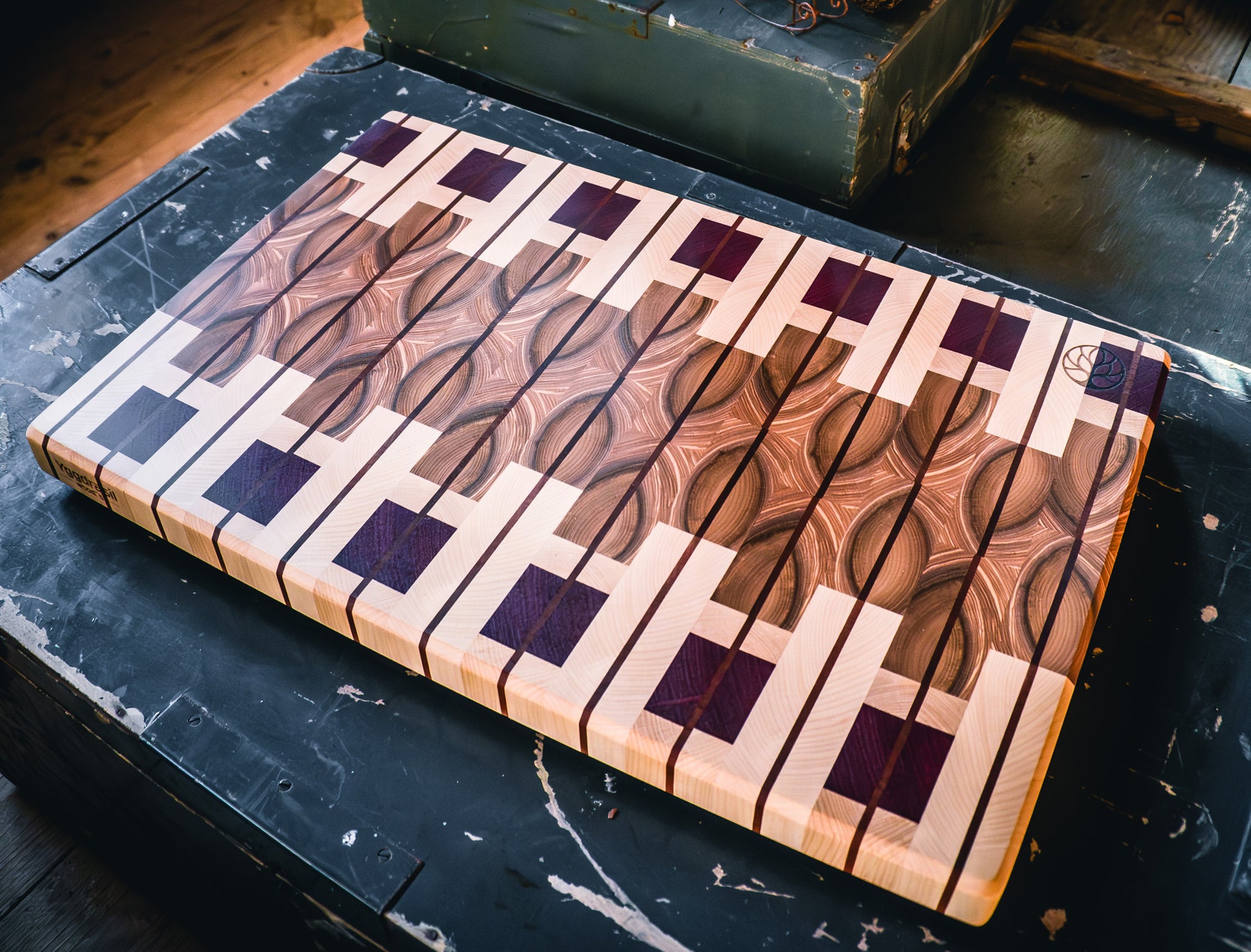 Entdecke dein Design-Hirnholz-Schnittbrett von Yggdrasil Woods, das durch seine außergewöhnliche Qualität, Langlebigkeit und ästhetische Anziehungskraft besticht. Was Odin zu einem besonderen Hingucker macht sind die genialen Muster, die durch die Verwendung von drei oder mehr Holzsorten entstehen. Jedes Brett wird in Deutschland handgefertigt und ist ein Unikat, das die Schönheit und Robustheit von massivem Holz vereint.